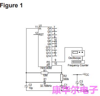 这远低于要求12.5pF,但逻辑的输入和输出引脚门呈现明显的负荷(图2),这些附加值需要加到6.9pF,这些负载通常约为3pF至每个引脚4pF,但最高可达10pF,也取决于逻辑家庭使用,这些额外的负载以及任何杂散电容电路应加起来大约12.5pF,如果需要可调谐振荡器,则22pF输出电容可以用固定的10pF电容代替,与2pF至22pF并联微调,为获得最佳结果NPO,COG或类似的低温系数应使用介电电容以获得最佳稳定性.