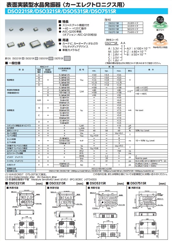 进口有源晶振产品比较适合用于电脑、娱乐设备,DSC、DVD、蓝光、HDTV、DVC和HDD,WiMAX,照相机模块,千兆以太网,车载多媒体设备等应用.KDS水晶振荡子,1XSR025000AR25,DSO751SR娱乐设备晶振.