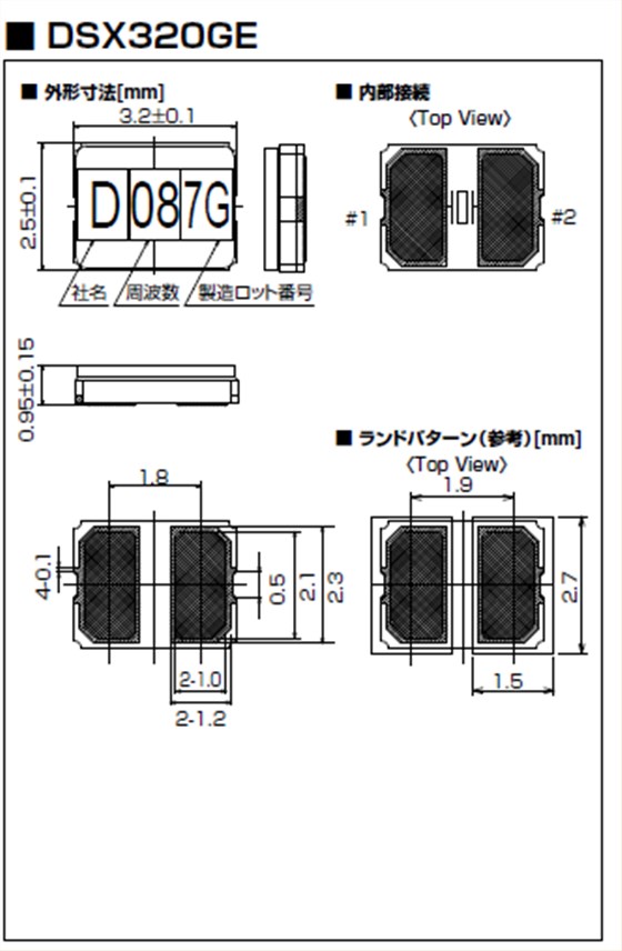小型、超薄、轻量的表面安装晶体振荡器厚度DSX321G(超过12mhz): 0.75mm