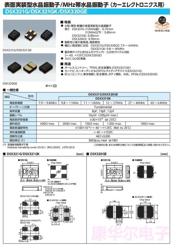 ●支持广泛频率DSX321G/DSX320GE: 7.9~64mhz