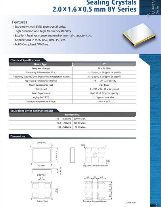 TXC晶振,贴片晶振,8Y晶振,8Y16020001晶振