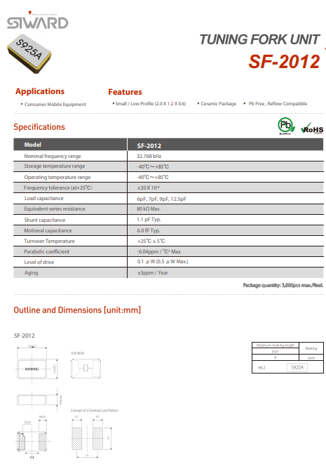 采购:希华晶振,贴片晶振,SF-2012晶振,32.768K晶振